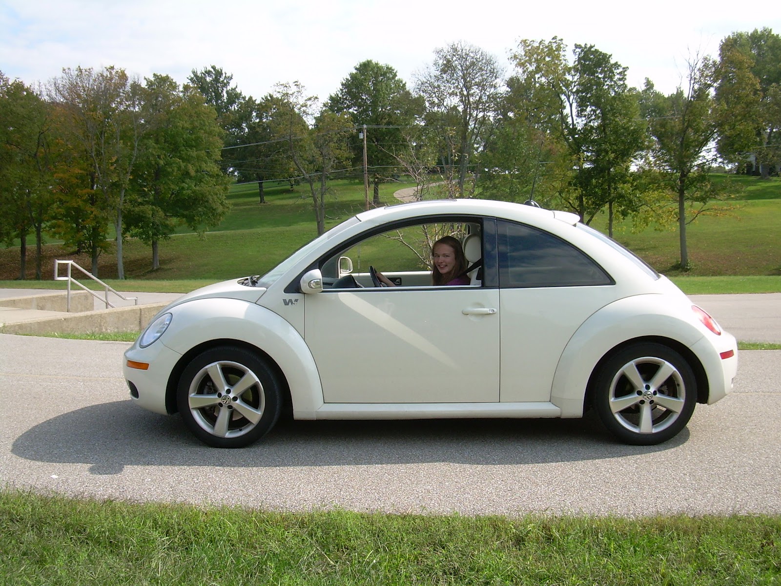 I love that old song "In the Good Old Summertime" - when I sing it in my head I see Victorian ladies all in white and lace strolling across a green where there are people playing croquet, sipping lemonade, and gentlemen in straw hats and bow ties (also wearing all white) laughing heartily. Ah me. A lovely dream. When I was young we used to play croquet all the time. Maybe we should get a croquet set again. Anyway, speaking of white, here is Robin in our little bug car - she now has her temporary driving permit. Isn't she cute behind the wheel?!